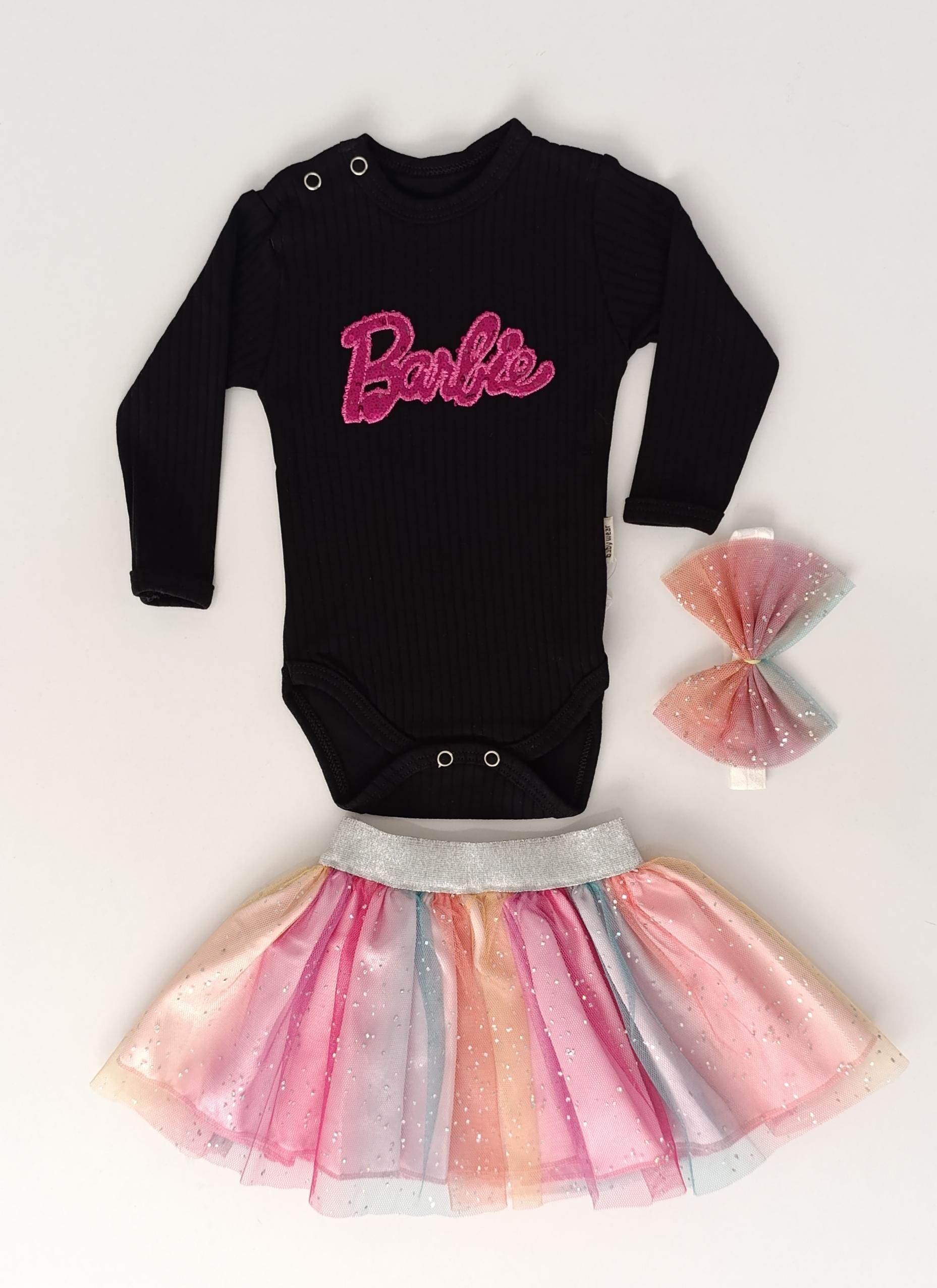 Minik prensesler için özel olarak tasarlanan Barbie Baskılı Kız Bebek Tütü Etek Takımı, şıklığı ve konforu bir arada sunar. Günlük kullanımdan özel günlere kadar her an için ideal bir kombin oluşturur.