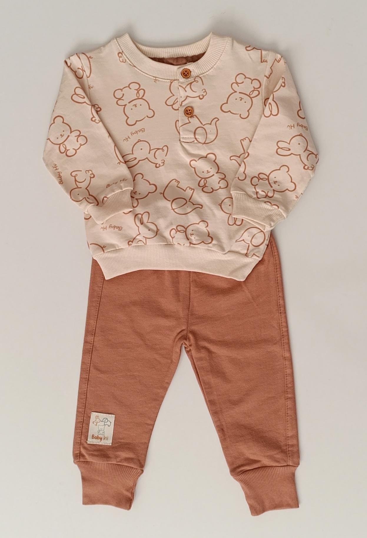 Eşsiz sevimli hayvan figürleri ile süslenmiş olan bu takım, çocukların hayal gücünü geliştirirken, onların stiline de katkıda bulunur. Kahverengi tonları ve canlı renk detayları, hem cinsiyet bağımsız hem de farklı kombinasyonlara olanak tanır.