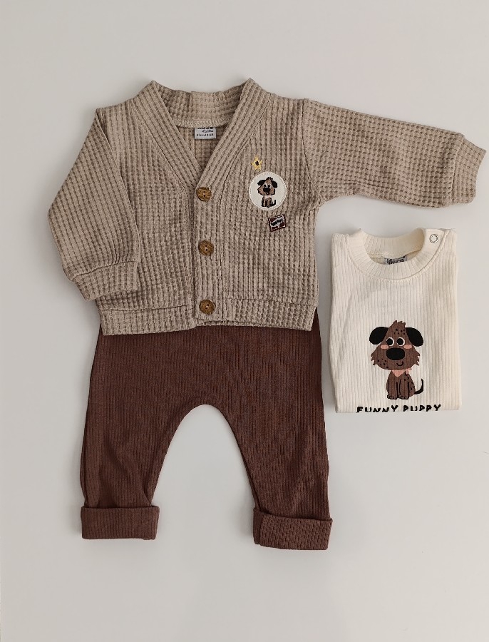 Bej ve kahve tonlarındaki kombin bebeğinizin sade ama şık bir görünüm elde etmesini sağlar. Doğal tonları sayesinde her türlü aksesuarla kolaylıkla kombinlenebilir.