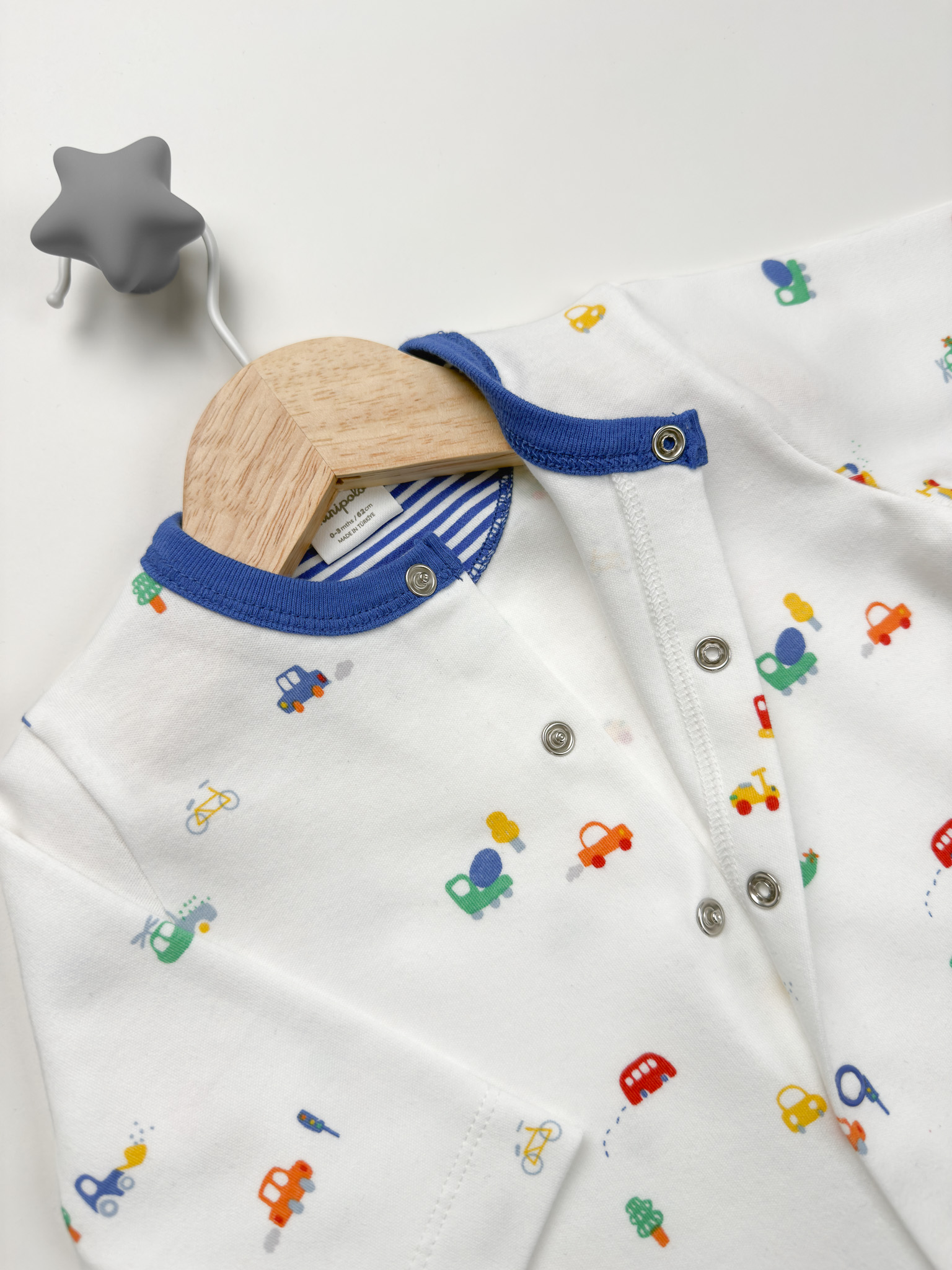 %100 Pamuk kumaştan üretilmiş bu set, hassas bebek cildiyle uyumlu, OEKO-TEX® sertifikalı malzeme kullanılarak Türkiye'de üretilmiştir.